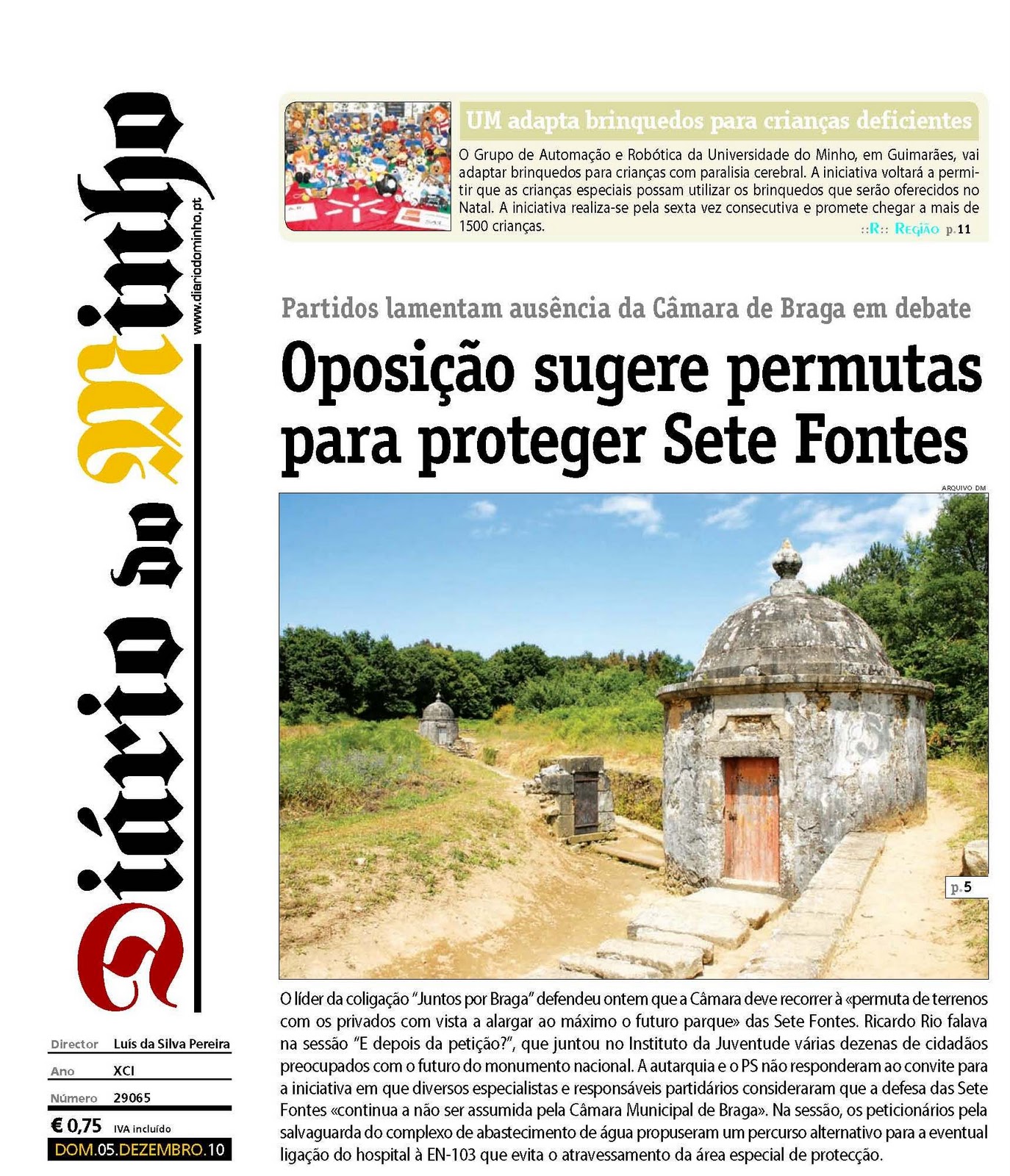 Sobre o assunto do vosso email do corrente mês, esclareço que a Direcção Regional de Cultura do Norte (DRCNorte) tomou conhecimento, em Janeiro, através do Gabinete de Arqueologia da Câmara Municipal de Braga da intenção da AGERE - Empresa de Águas, Efluentes e Resíduos de Braga, EM, de proceder a uma intervenção na conduta que transporta a água dos reservatórios (modernos) das Sete Fontes para o Bairro da Alegria, e que atravessa perpendicularmente o vale em que se implantam as Sete Fontes de S. Vítor.